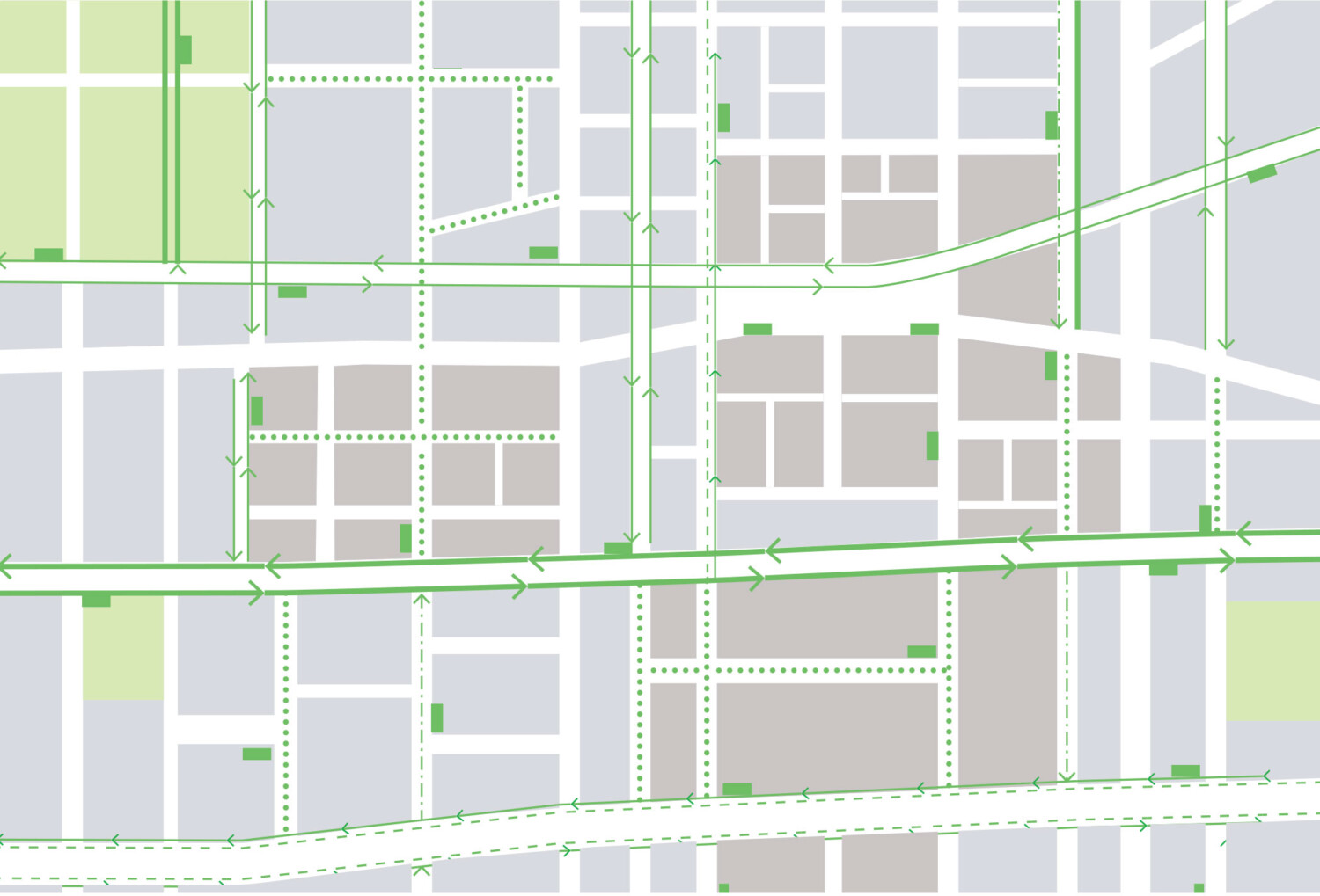 Ensure that the network covers all neighborhoods and offers equitable access to cycle facilities and infrastructure. Destinations such as transit stations, schools, parks, markets, community centers, factories, and office areas should be connected directly when planning cycle networks.