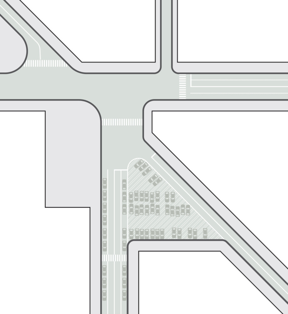 Based on the intersection analysis, this intersection is redesigned to provide a legible, safe, and comfortable space for all users.