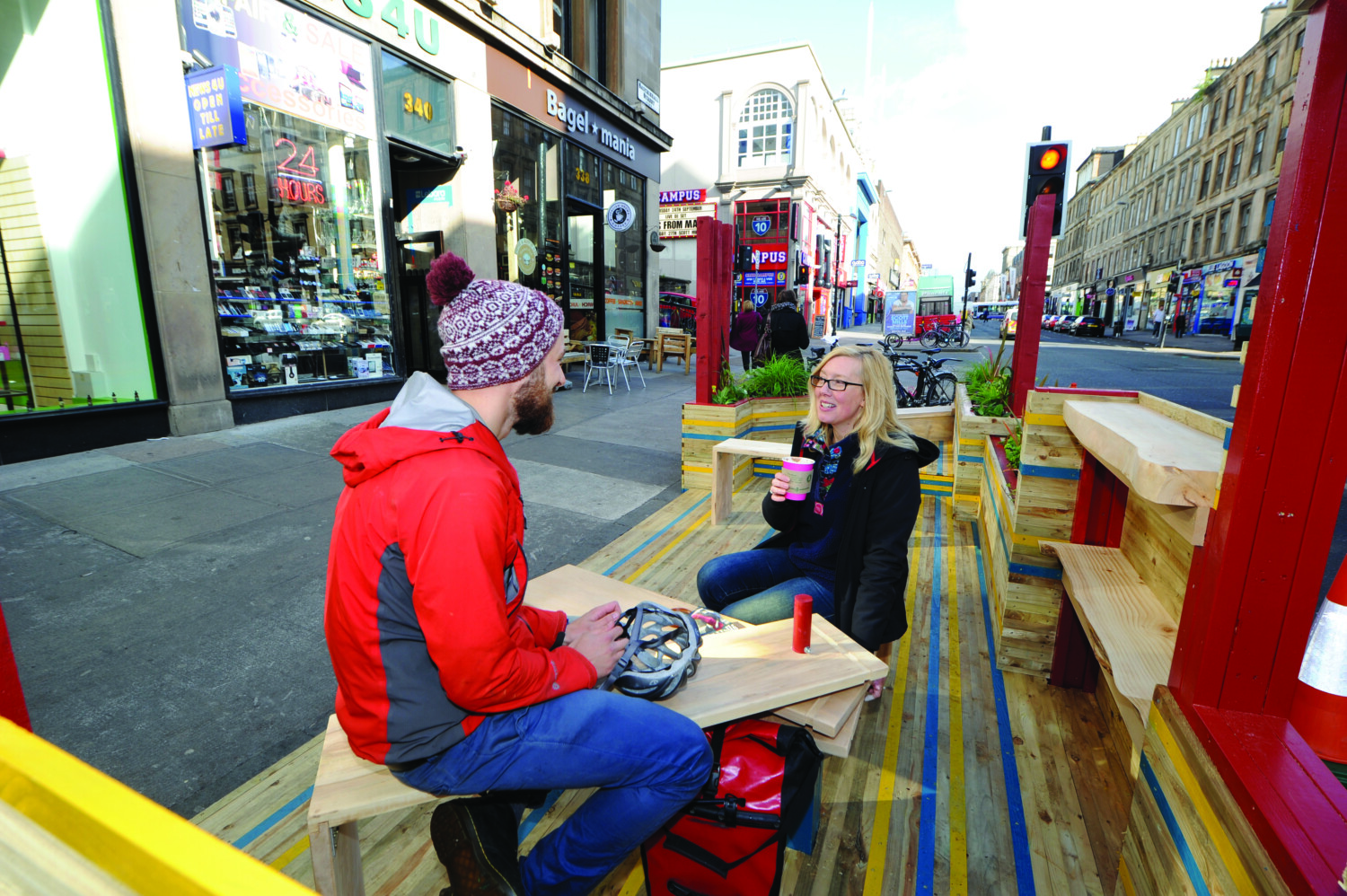 Parklets are temporary or permanent conversions of on-street, curbside parking spaces into vibrant and accessible new public spaces. Also known as street seats, pocket parks, mobile parks, or curbside seating, these are often the product of a partnership between the city and local businesses, residents, or neighborhood associations. Parklets are often applied alongside sidewalks that are too narrow or congested to allow for the extension of sidewalk cafés or street furniture.