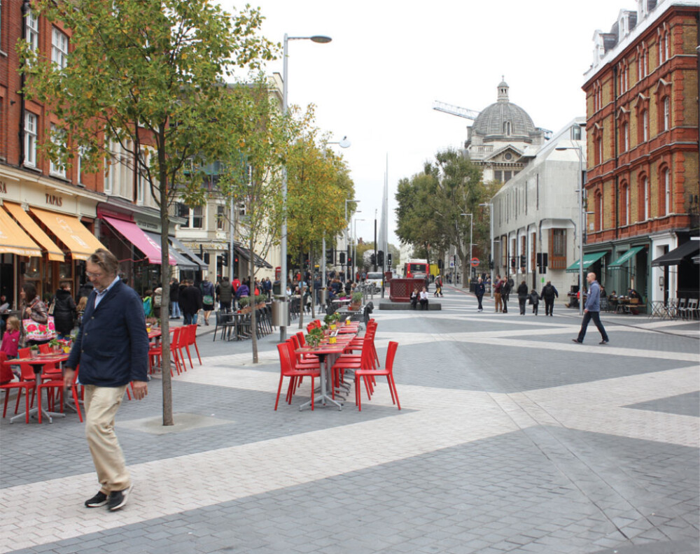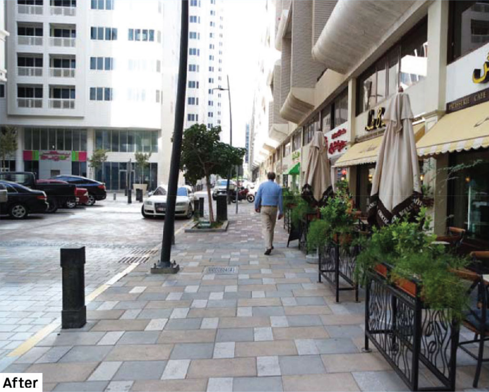 The illustration above demonstrates the same principles as outlined on the previous page in a different context with a wider street width.