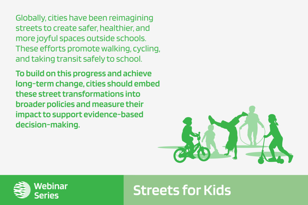A lot has happened in the five years since the release of the Designing Streets for Kids guide! GDCI has supported over 60 cities to build local capacity to shape Streets for Kids, hosted two cycles of the Streets for Kids Leadership Accelerator, trained more than 7,200 practitioners, city officials and local NGOs, and published two new resources that help center children in Streets design: How to Evaluate Streets near Schools and How to Engage Kids in Street Design. With our partners, we transformed over 40 streets near schools, protecting over 85,000 children and improving their access to over 90 schools. These projects demonstrate what’s possible when we rethink street spaces, while working with local leaders to measure and evaluate their impact. Around the world, exciting initiatives continue to emerge and inspire new resources, community-driven programs, and bold street transformations.