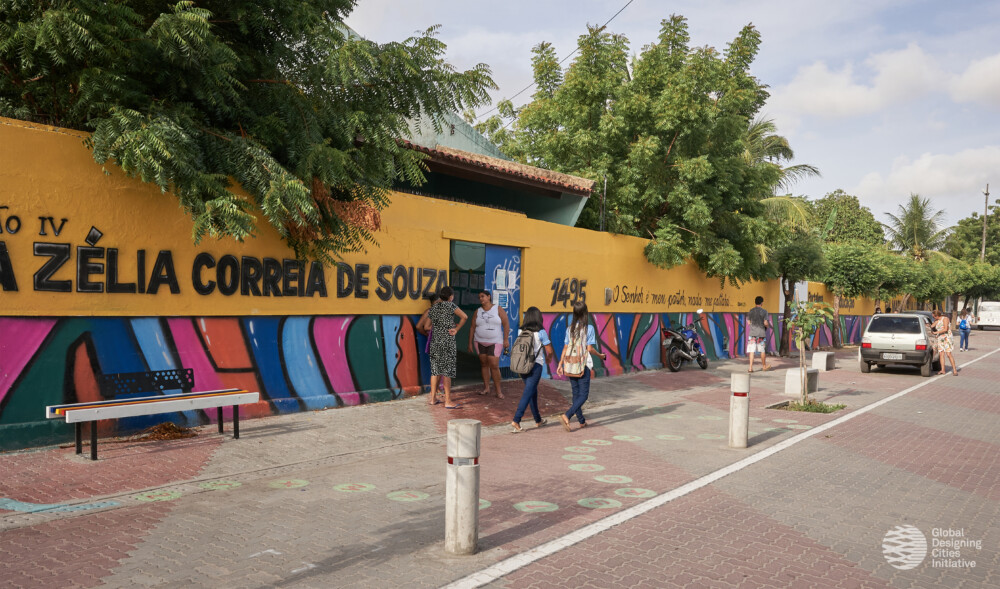 In 2019, Fortaleza established the Caminhos da Escola (Pathways to School) program with the goal of reducing the number of children killed and injured in road crashes. With the support of Global Designing Cities Initiative’s (GDCI) Streets for Kids team, local teams examined several sites that had been previously identified by Caminhos da Escola. Based on different factors like road crashes in the area, the amount of students, and the availability of public spaces in the schools’ surroundings, they selected a site comprising two adjacent streets: Rua Antônio Pereira and Avenida Chico Mendes. For this specific area, another important factor was that the city already had designated funds due to a bigger structural program in the city. Throughout the implementation of this Streets for Kids project, several departments in the city of Fortaleza were involved—including the Municipal Office of Regional Management, Fortaleza Traffic Authority, the Secretary of Education, and the Science, Technology, and Innovation Foundation of Fortaleza. Aside from the work on-site, this project involved school community members as key stakeholders.