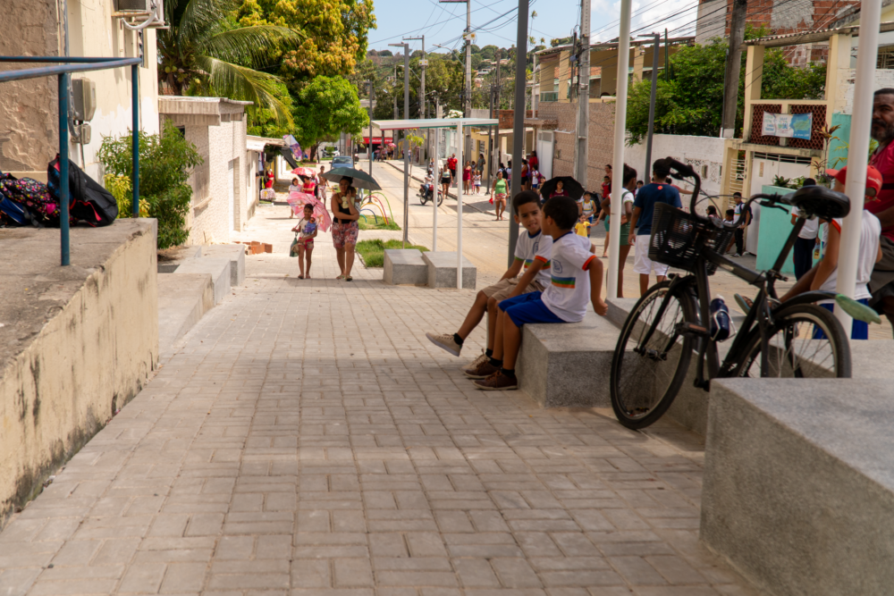 In Recife, the Streets for Kids project focused on Silva Jardim and 22 de Agosto streets in the Jordão neighborhood— a community where children face multiple challenges accessing safe and high-quality public spaces. Heavy rains, frequent flooding, and landslide risks often make their journey to school dangerous and unpredictable. The project directly benefited around 566 students aged 2 to 10 attending three nearby schools, as well as nearly 1,200 daily pedestrians who rely on these streets.