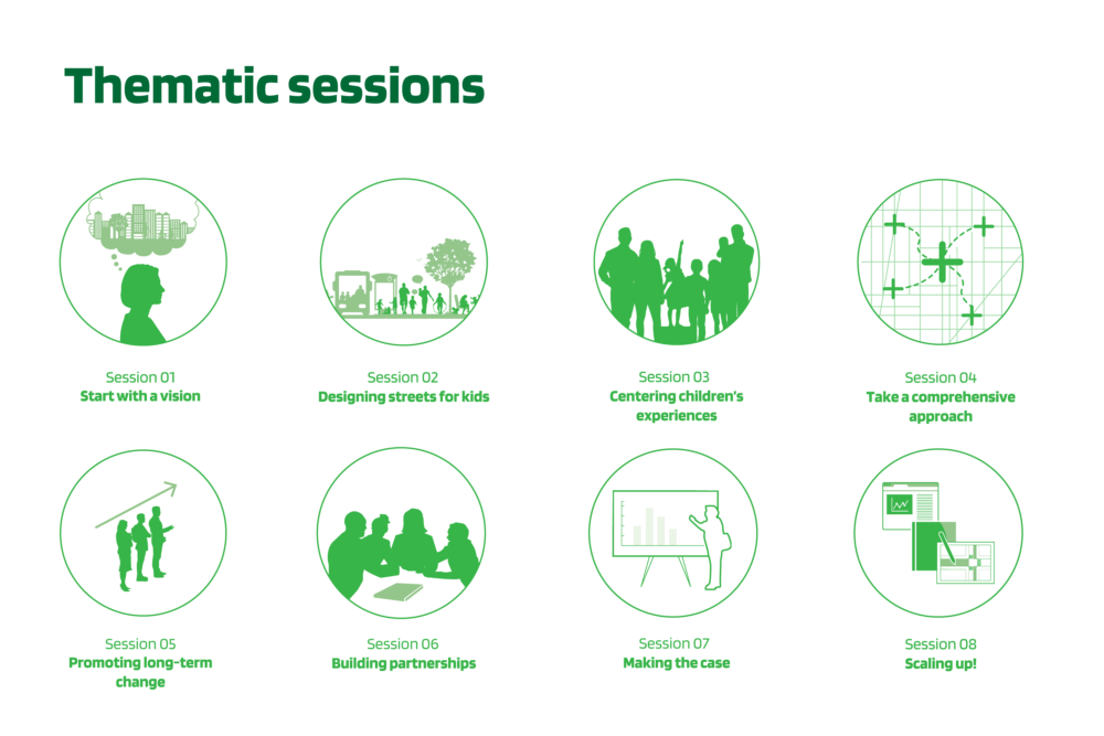 Over the course of two months, participants joined eight thematic sessions. In the first phase, they explored how to set a bold vision, apply street design principles that support independent mobility and play, and use engagement and data to center children’s needs in their work. The second phase offered space for reflection and collaboration, as cities shared lessons from global case studies, built peer connections, and refined their strategies for long-term impact.