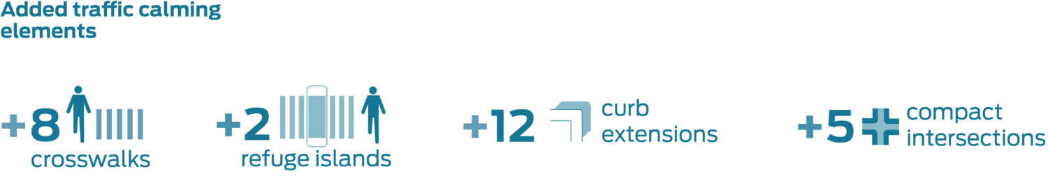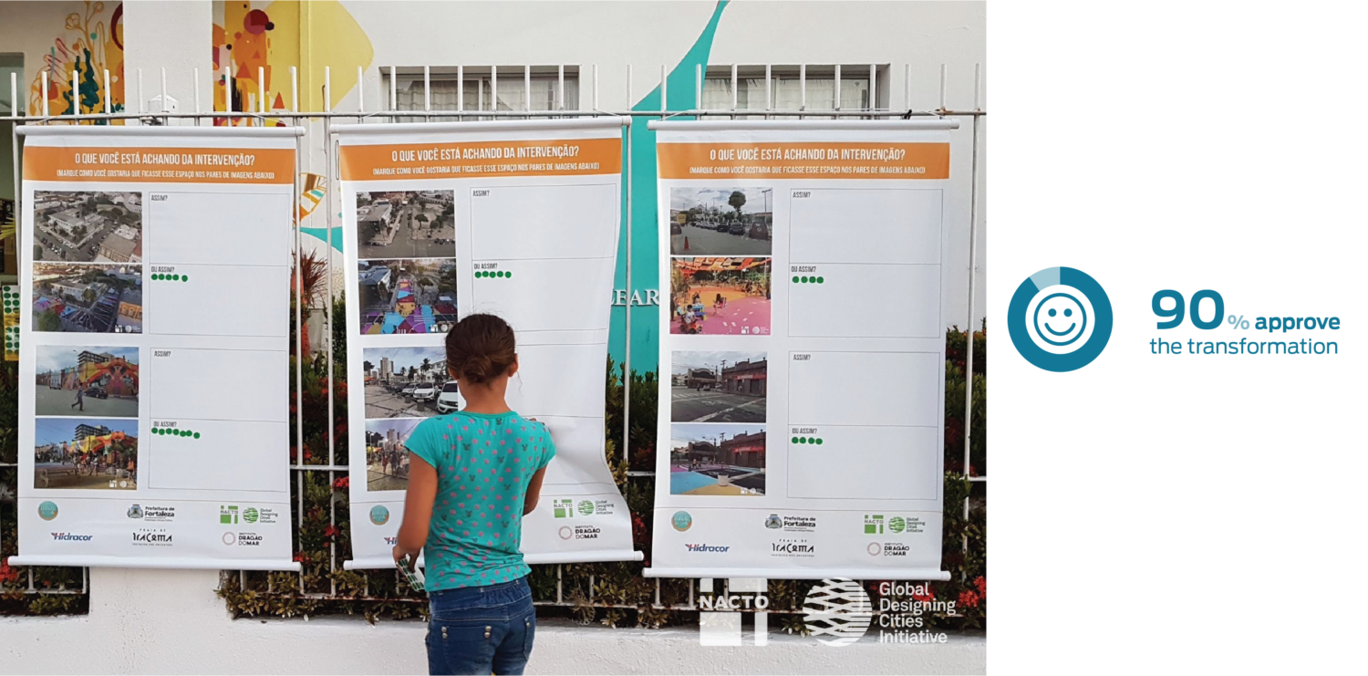 Street designs that put people first help local communities thrive. The transformation was initially planned for a 15-day interim period, but measurably improved safety and local support of the redesign led officials to make the project permanent. Qualitative surveys of 800 site visitors, polled through an on-site digital panel, showed that 90% approved the redesign.