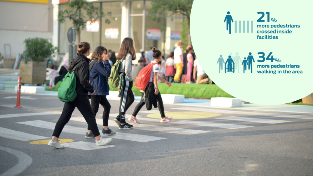 Overall, it was observed that there was a 43% increase in children using the streets independently. The surveys conducted at the site before and after showed that there was also a 43% decrease in the number of people who felt unsafe crossing the intersection.